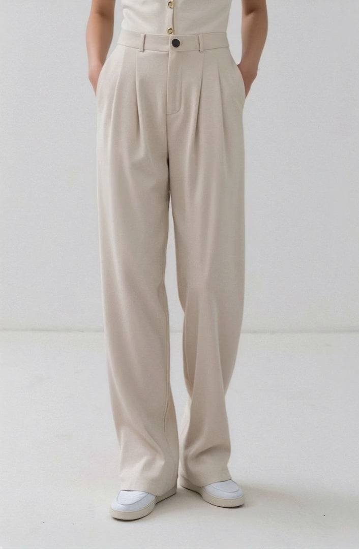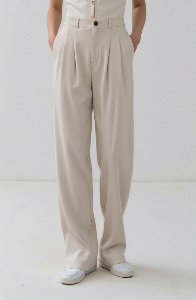 These high waist pleated pants combine classic tailoring with modern elegance, making them a versatile piece for both casual and semi-formal occasions. Pair them with a blouse for a polished look or with a simple tee for a more relaxed vibe