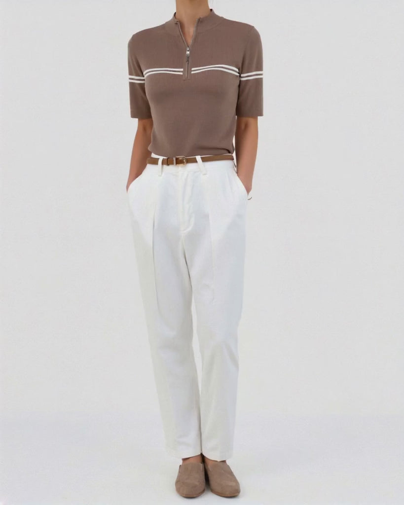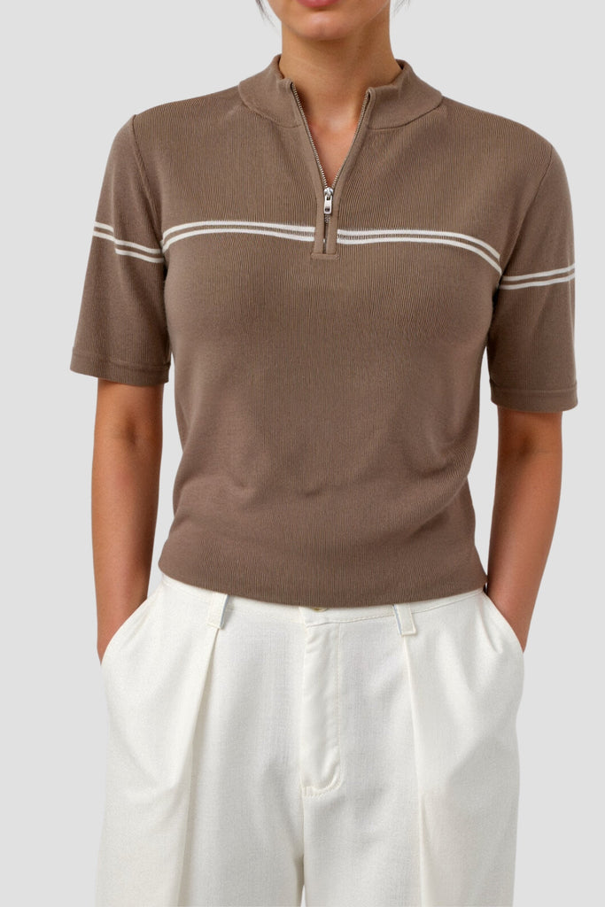 Add a touch of sophistication to your summer wardrobe with the Old Money Zip Up Elegant Short Sleeve Striped T-Shirt. Crafted from 100% cotton, this t-shirt combines elegance with casual comfort. The stylish stripe pattern and zipper detail offer a modern twist on a classic design.