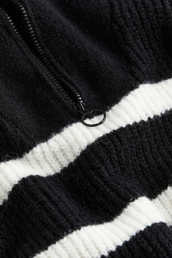 In a timeless black and white striped pattern, this pullover embodies the essence of Old Money style. Its long length ensures versatile styling options, making it a staple piece in any fashion-forward wardrobe.