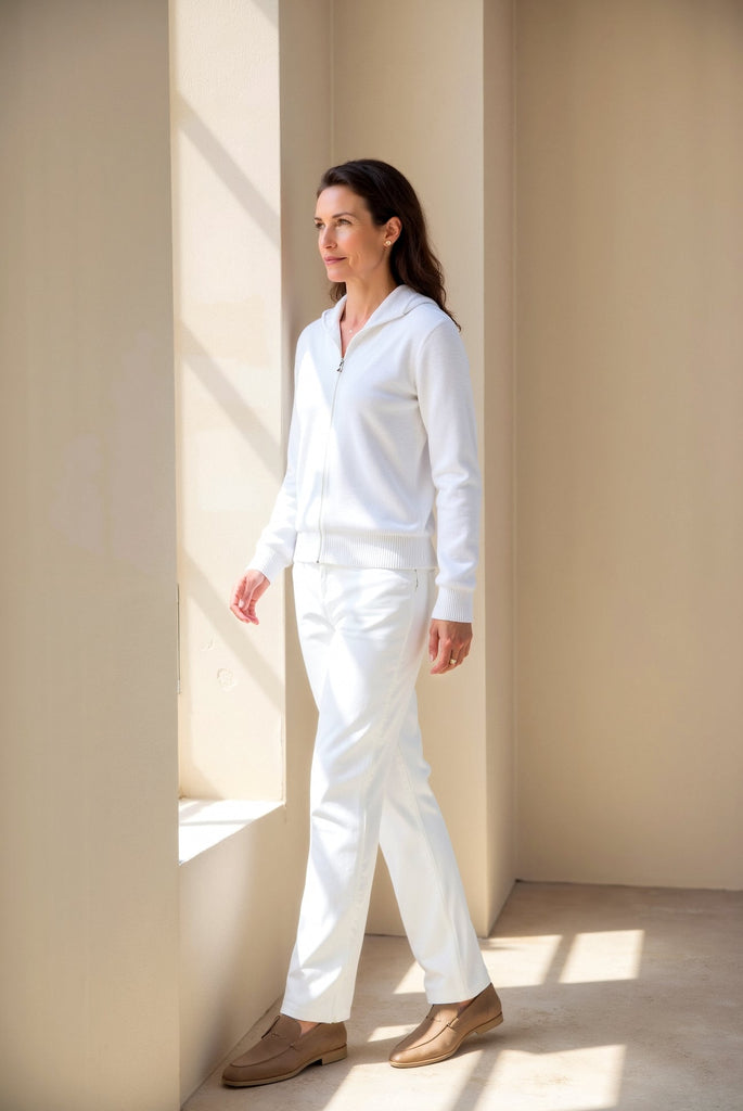 Embrace understated elegance with the BLENIN Women Smart Luxury Hooded Zip Sweater. Crafted from a premium cotton-polyester blend (80% cotton, 20% polyester), this versatile hoodie combines comfort and luxury with a sleek, casual design.