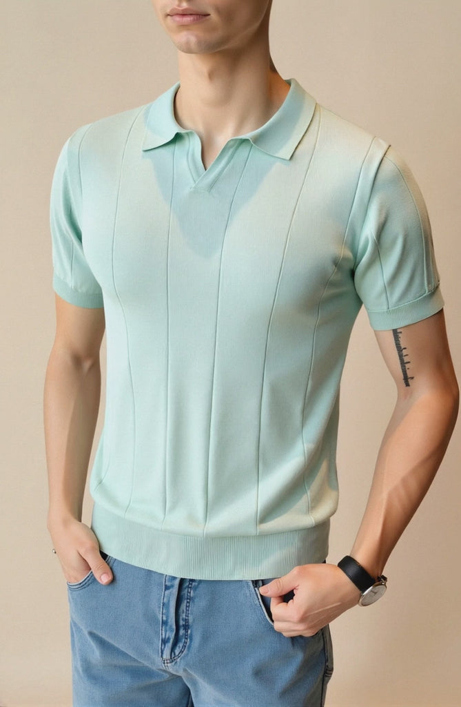 The Old Money Linear Polo T-Shirt is a stylish choice for those who appreciate classic design with a modern twist. Its simple, solid color and refined lapel collar make it an excellent addition to a sophisticated yet relaxed summer wardrobe.