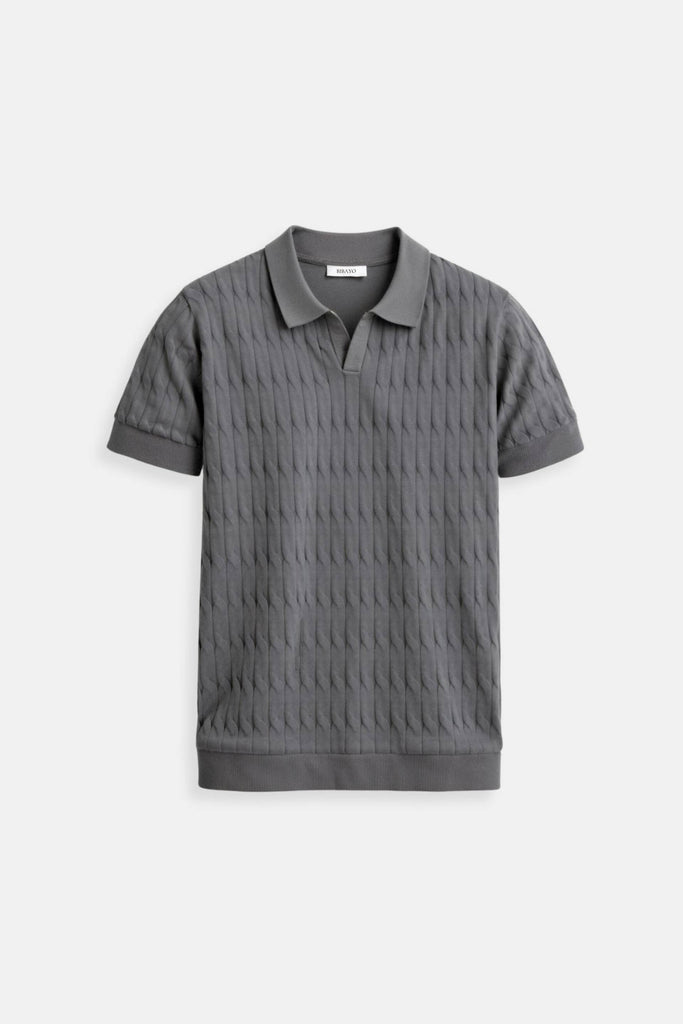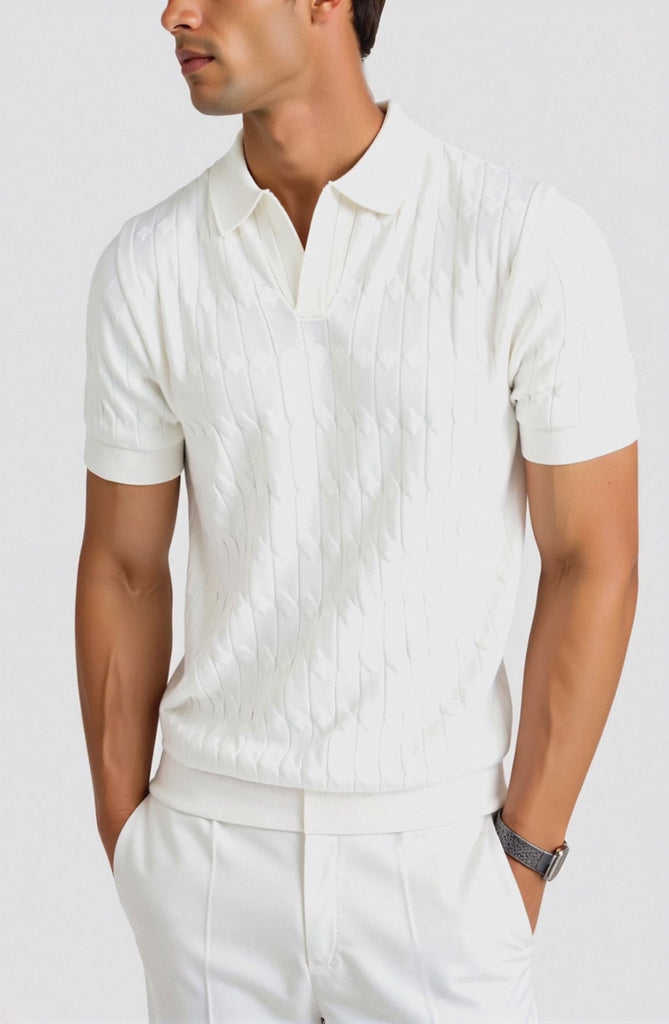 This V-neck polo T-shirt combines classic cable knit detailing with a modern silhouette, making it an excellent choice for both laid-back weekends and casual outings. Its elegant design ensures you stay stylish while enjoying the utmost comfort.
